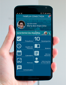 O aplicativo Família Conectada permite consultar seus dados escolares em tempo real, de maneira rápida e fácil. Ele é gratuito e está disponível para responsáveis e alunos de toda a Rede de Ensino.